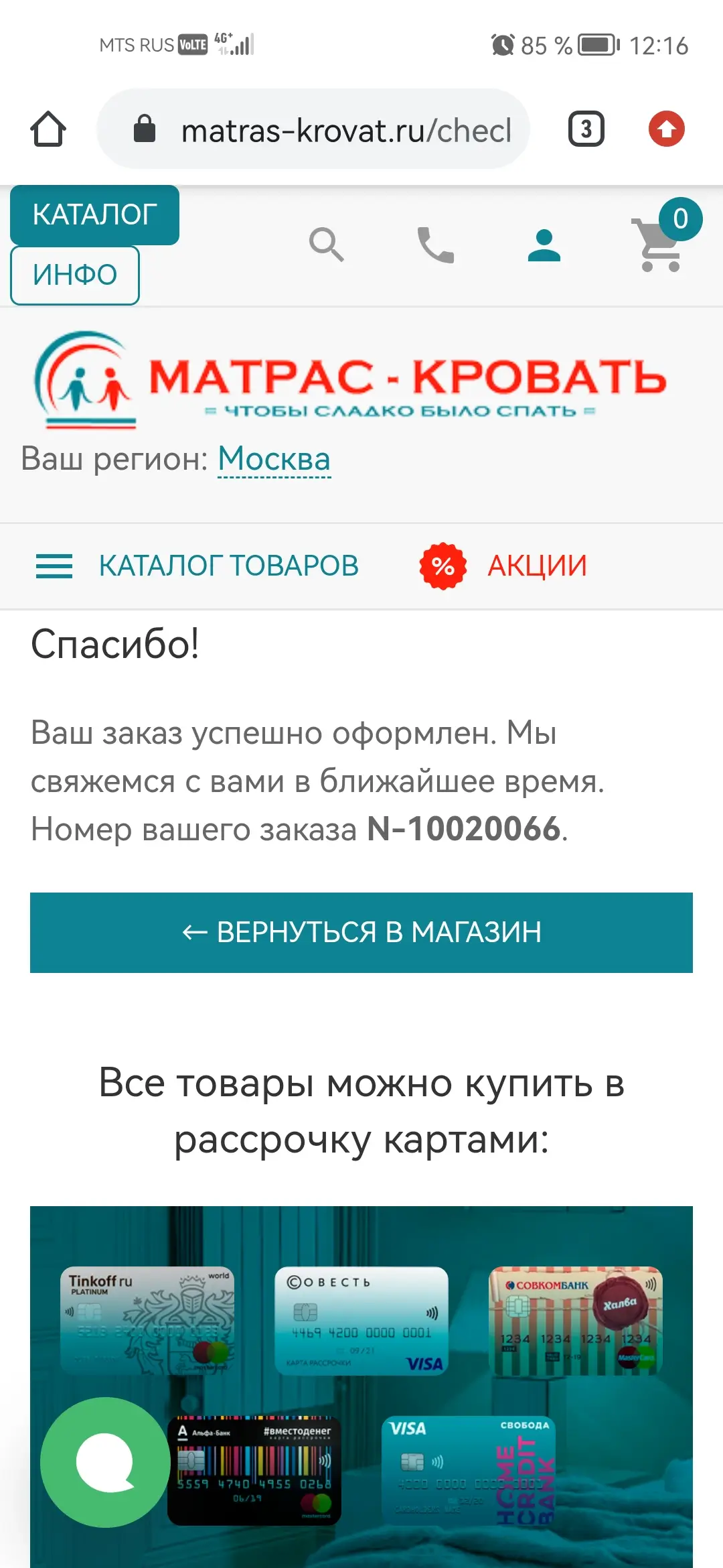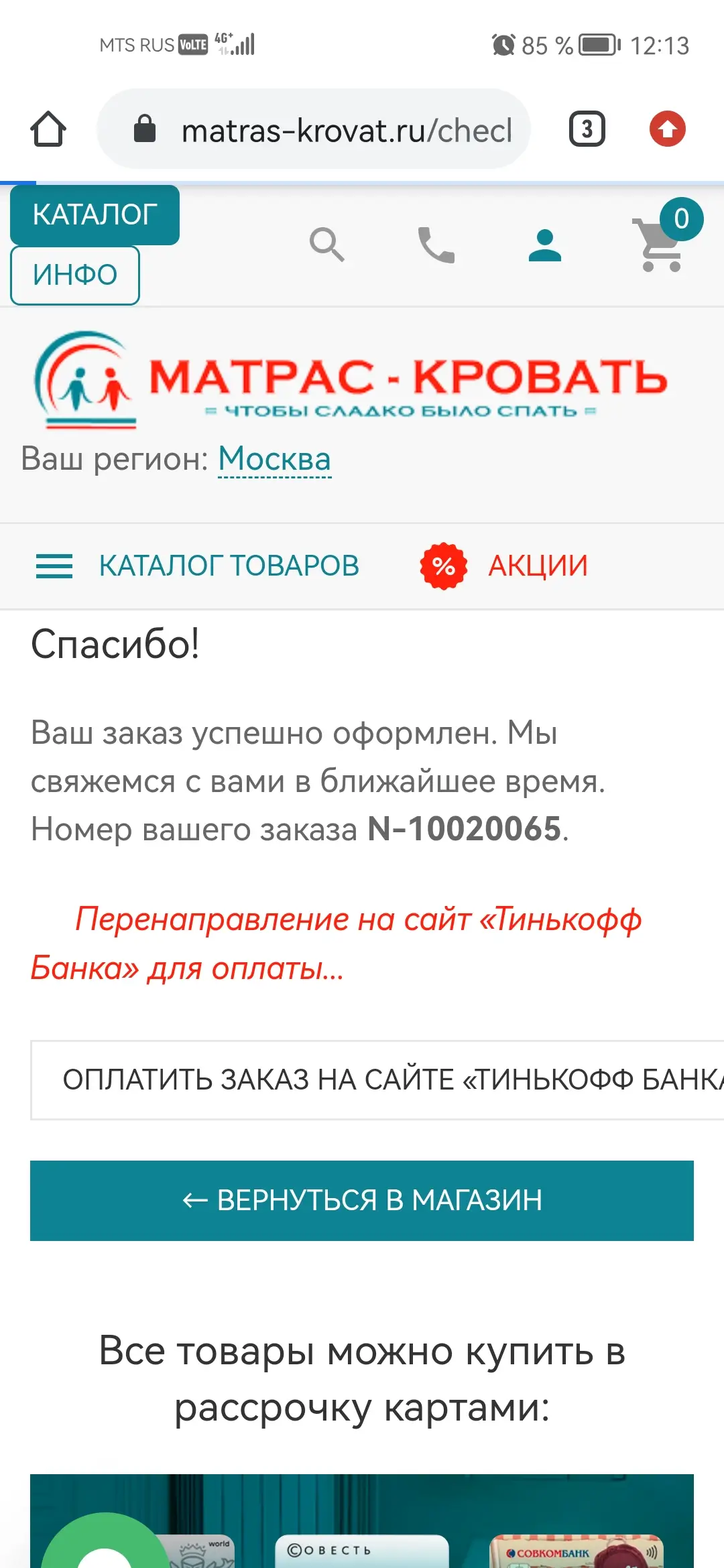 Оплата в рассрочку или кредит