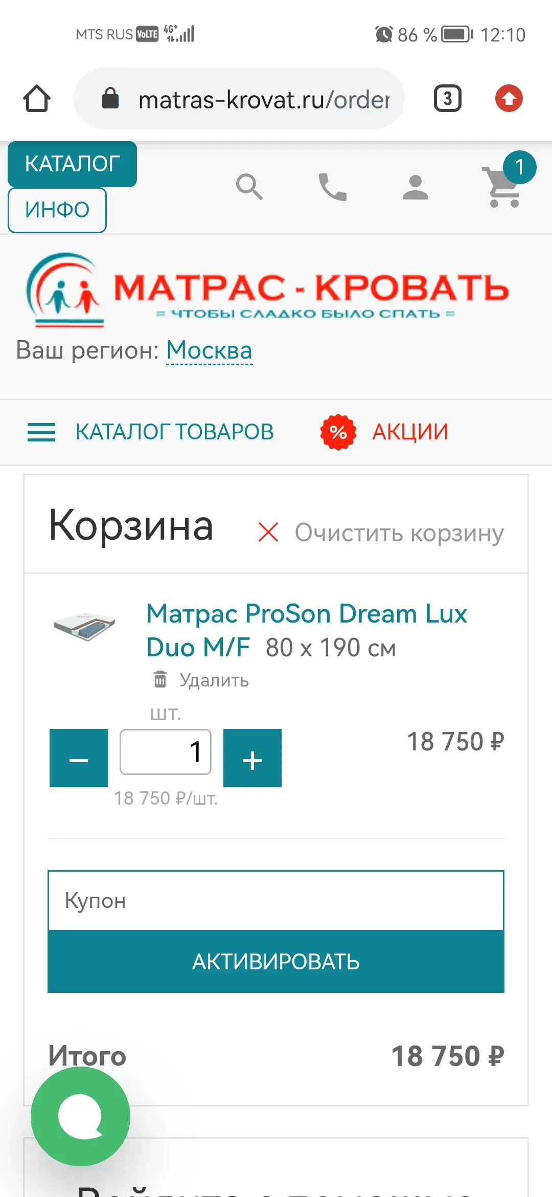 2. Если у Вас есть купон на скидку, укажите его при оформлении заказа.