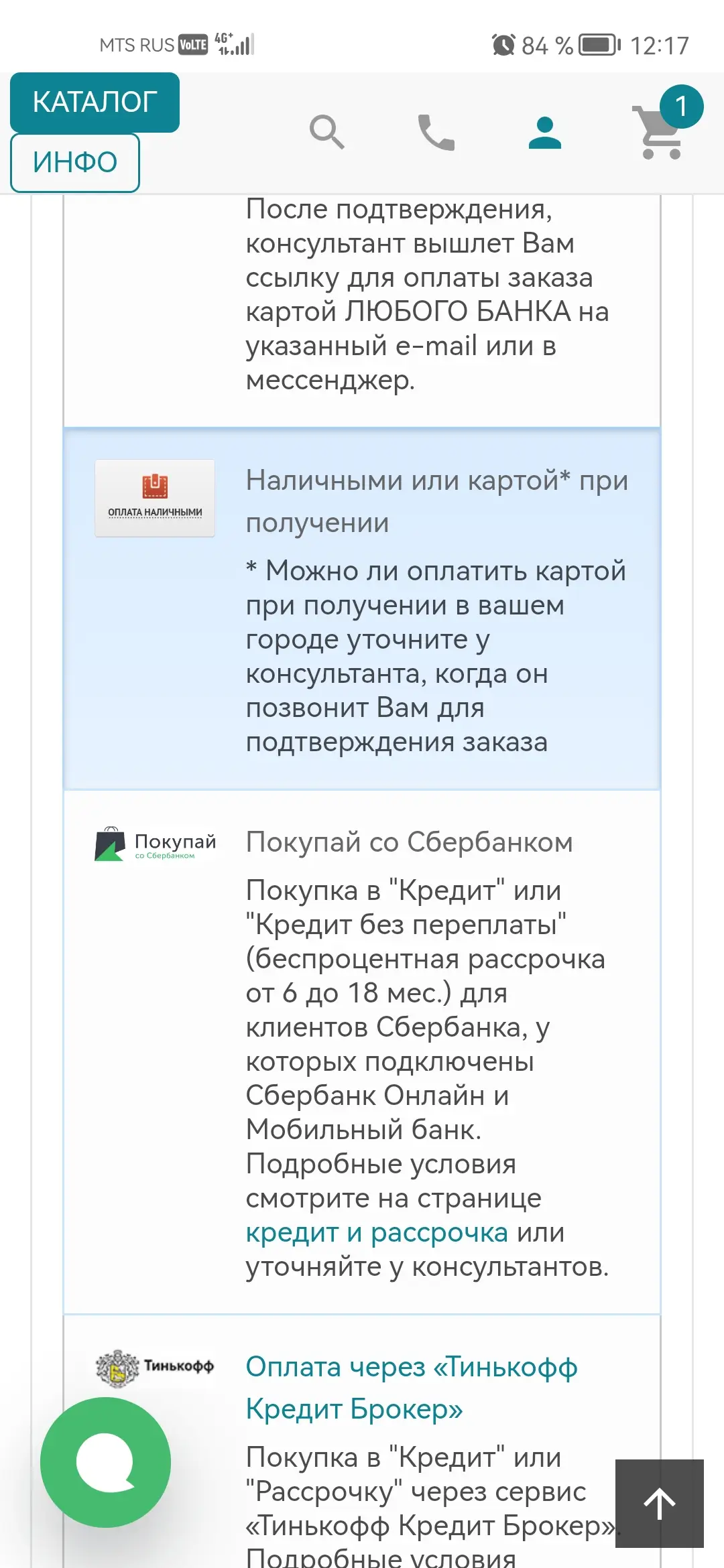 5. В вариантах оплаты выберите "Наличными или картой при получении"