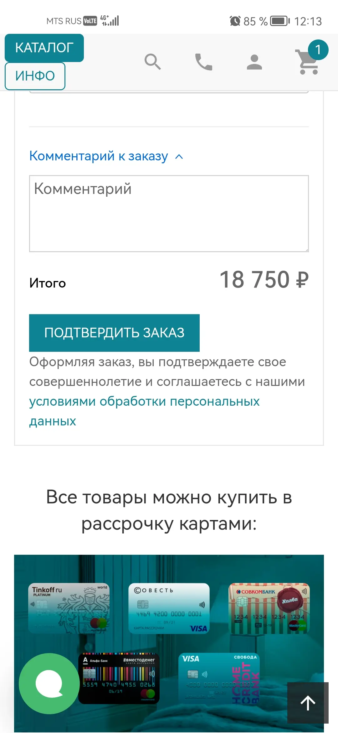 5. Подтвердите заказ, нажав на кнопку "Подтвердить"